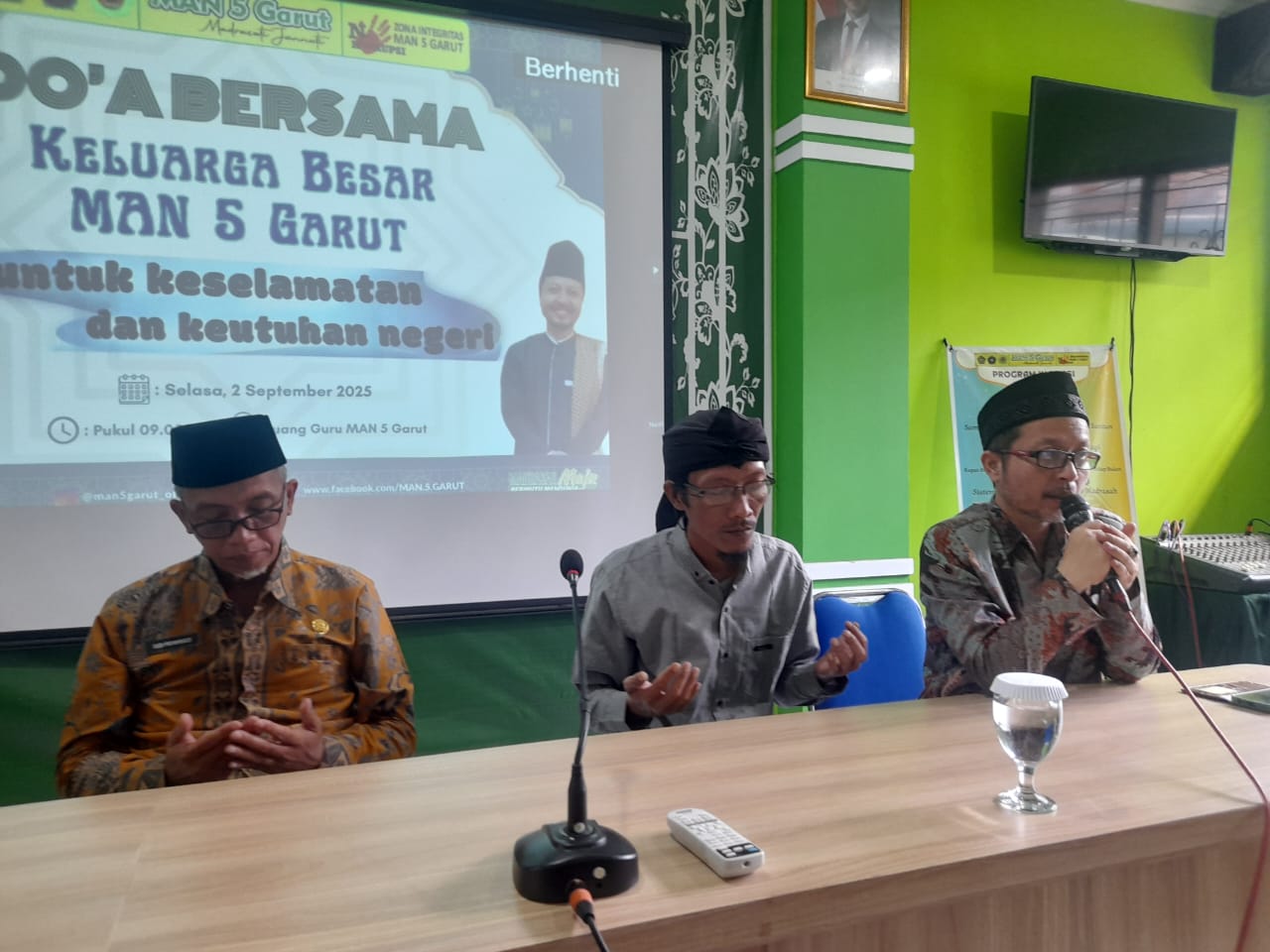 Garut (Humas MAN5Grt) – Dalam suasana khidmat, Civitas MAN 5 Garut menggelar kegiatan doa bersama untuk keselamatan dan keutuhan Negara Kesatuan Republik Indonesia. Kegiatan ini dilaksanakan pada Selasa, 2 September 2025, bertempat di ruang guru madrasah, dan diikuti oleh seluruh pegawai MAN 5 Garut.
